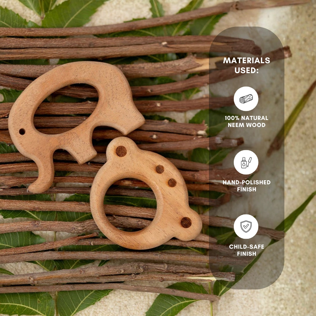 βͺ Combo Includes: 2 neem wood teethers β Elephant & Monkey shapes